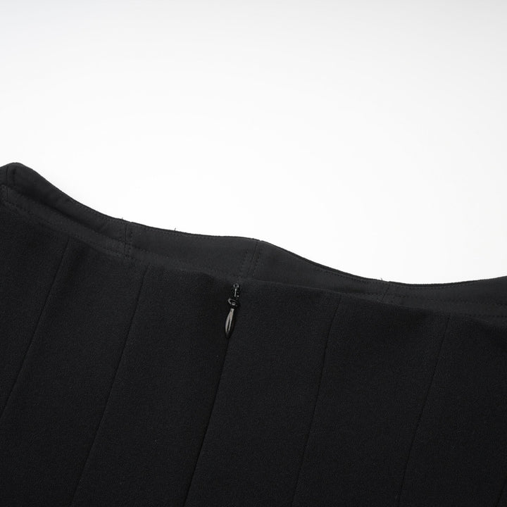• Model is 1.75m, wearing size S • Black • Off the shoulder • Pleated • Rear zip fastening • Flared hem • Maxi length • Composition: 100% Terylene fiber