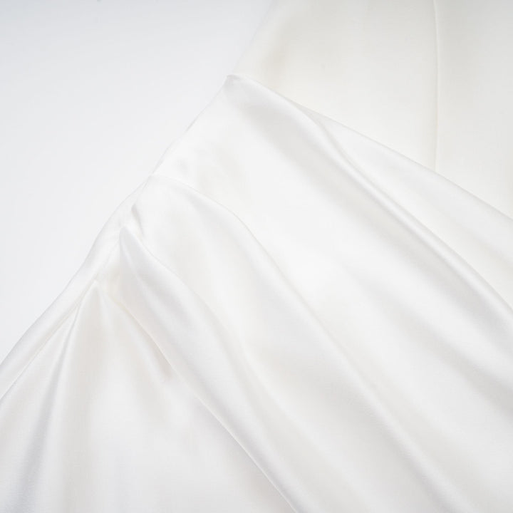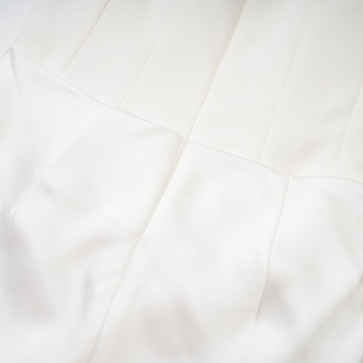 • Model is 1.75m, wearing size S • White • Off the shoulder • Pleated • Rear zip fastening • Flared hem • Maxi length • Composition: 100% Terylene fiber