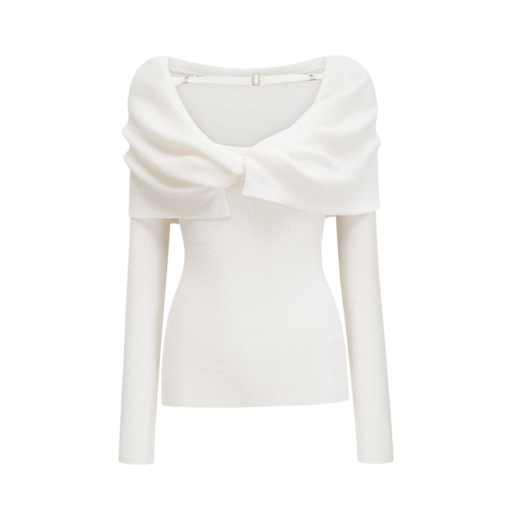 • White • Long sleeves • Twist design • Fitted • Ribb-knitted construction • Composition: 15% Wool, 65% Polyester, 20% Cotton