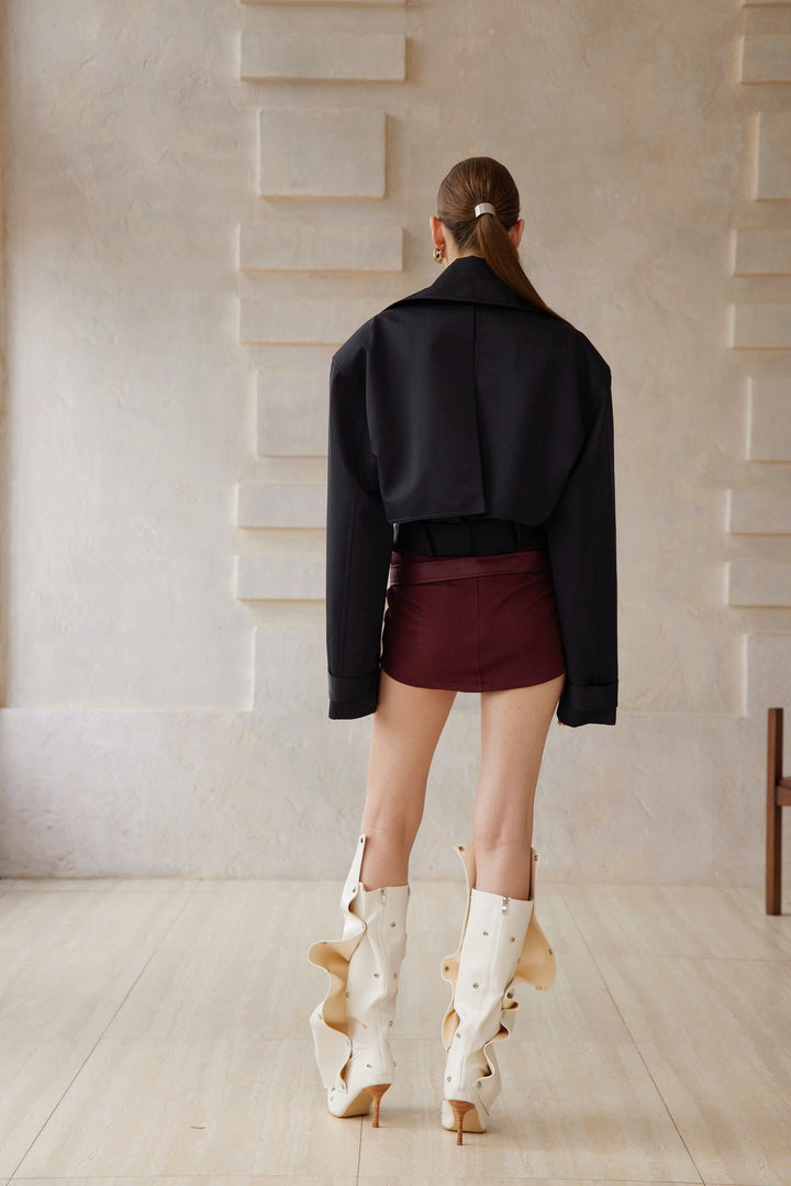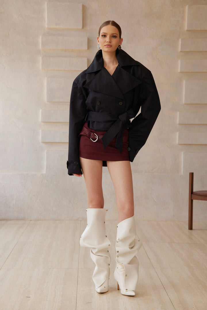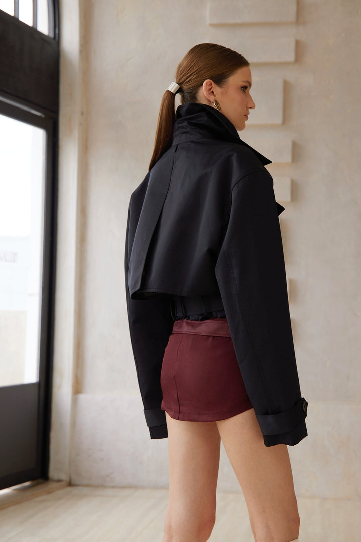 Avril Black Double-Breasted Short Trench Coat
