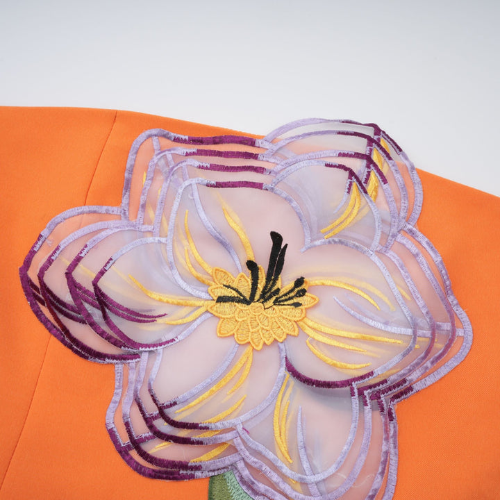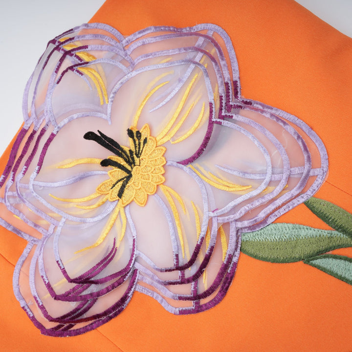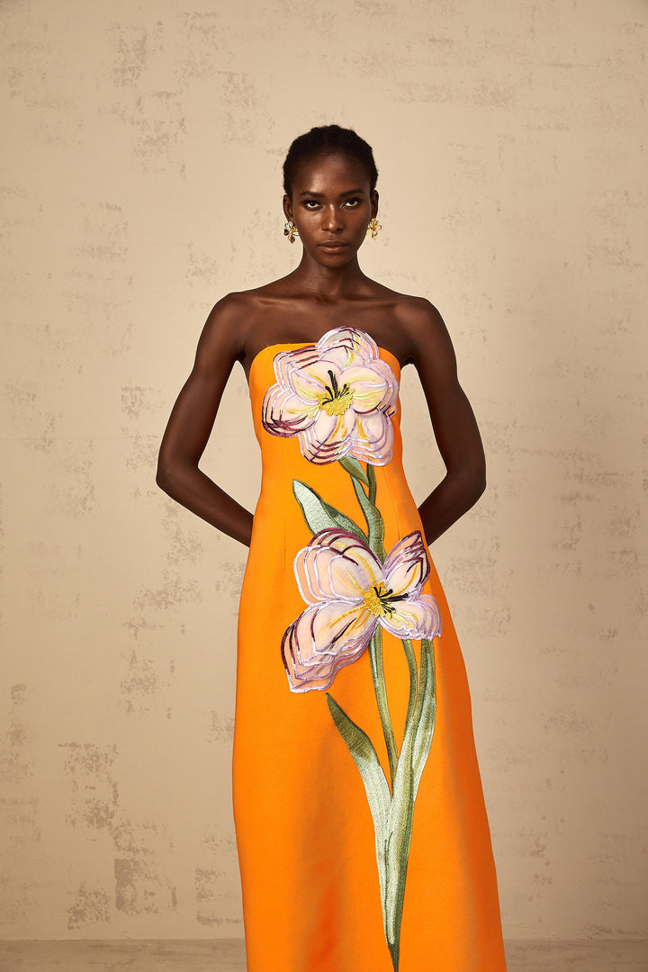 Irène Sequin Embroidered Off-Shoulder Midi Dress in Orange