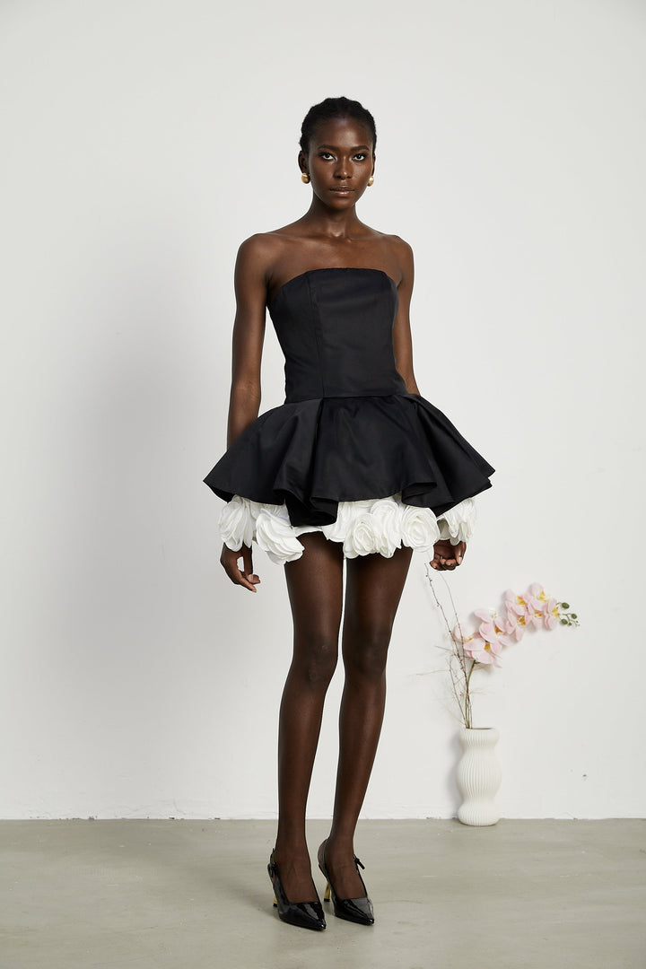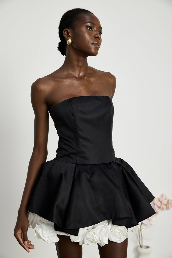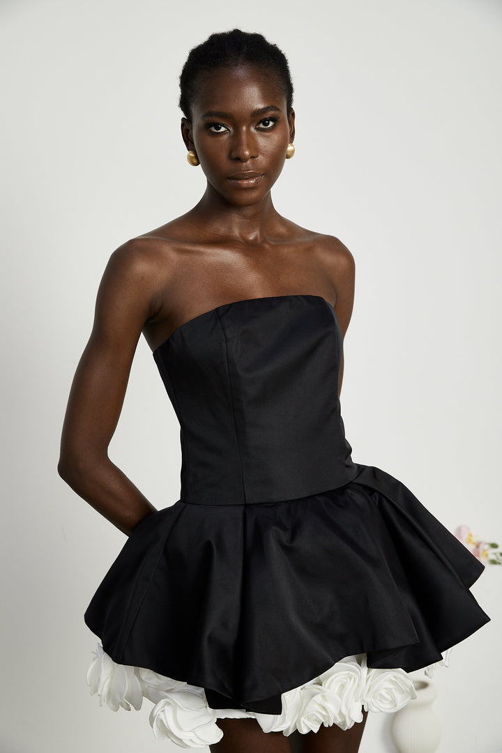 Lucie black petal-layered strapless corset mini dress (US Only)