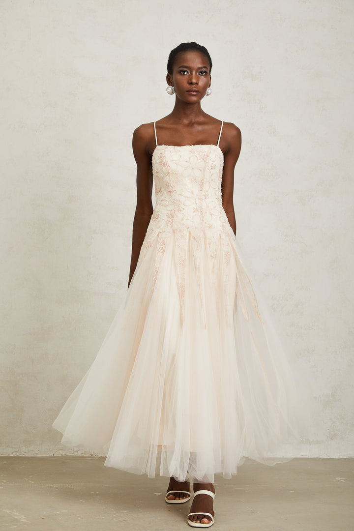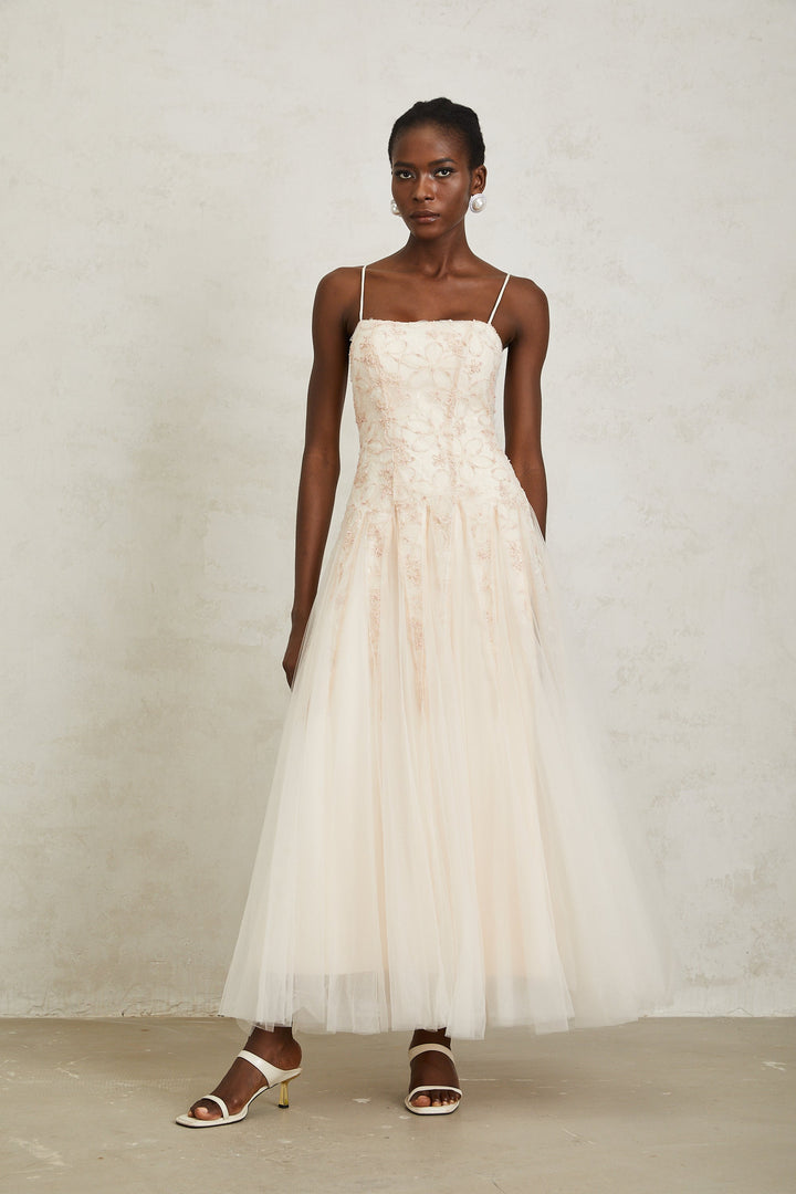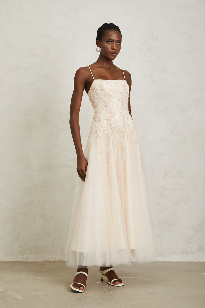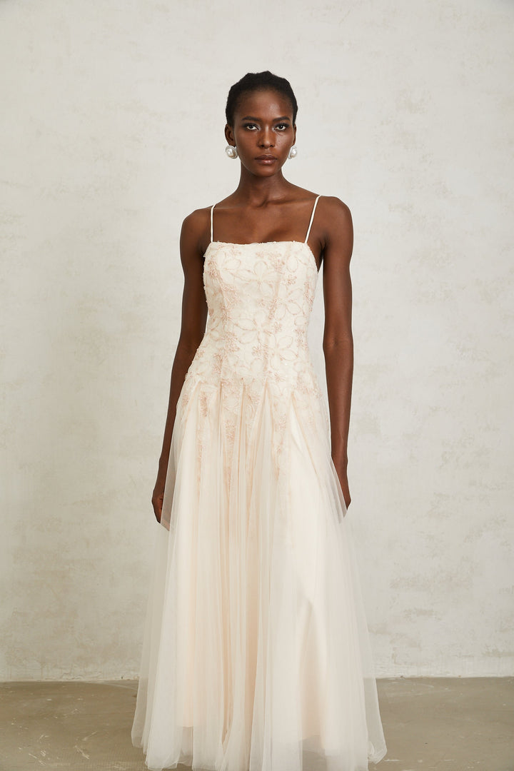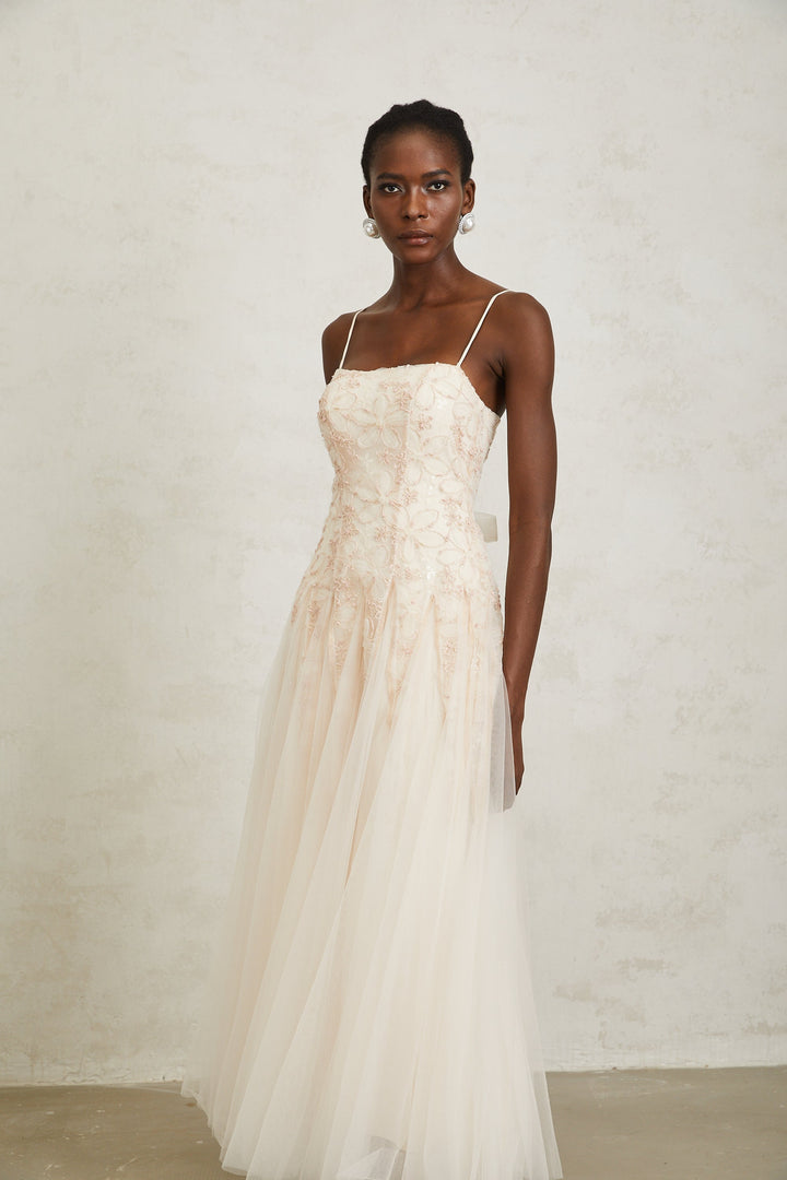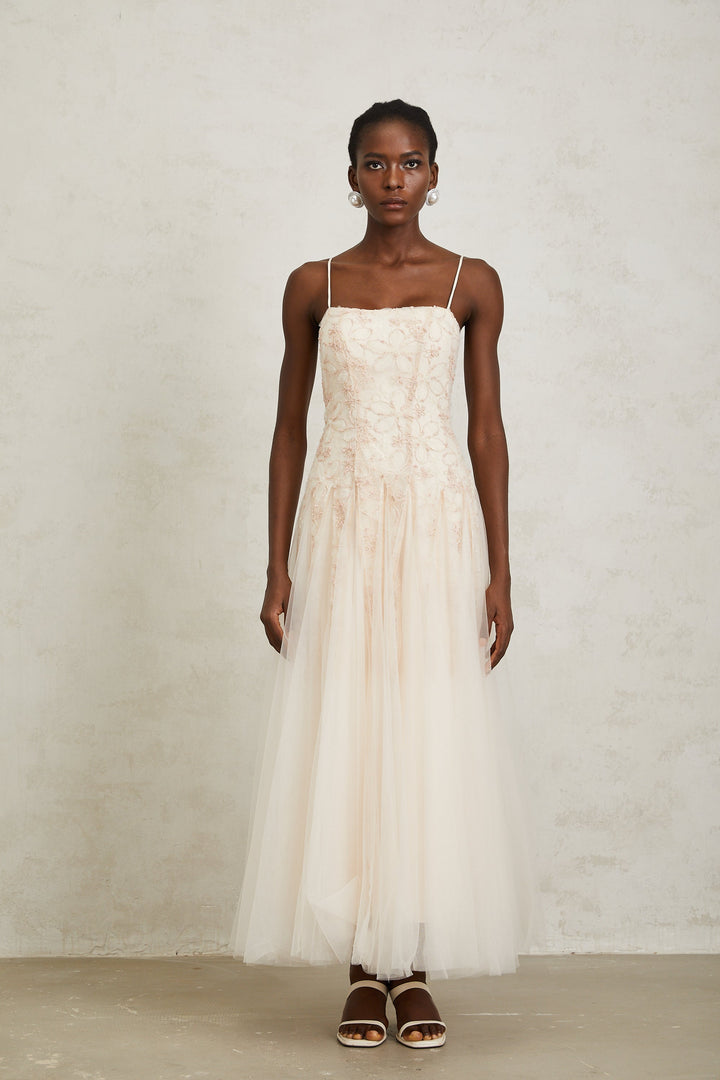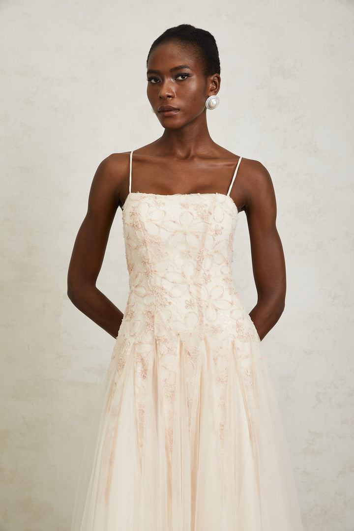 Madeline Pink Floral Embroidered Tulle Maxi Dress