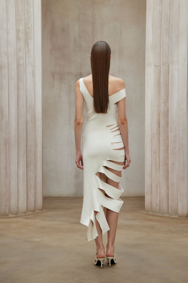 Maëlys White Asymmetrical Cut Out Midi Dress