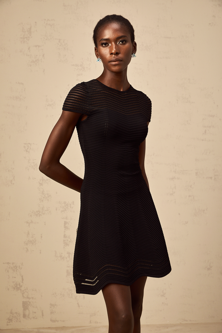 Mélisande black wavy-crochet textured mini dress