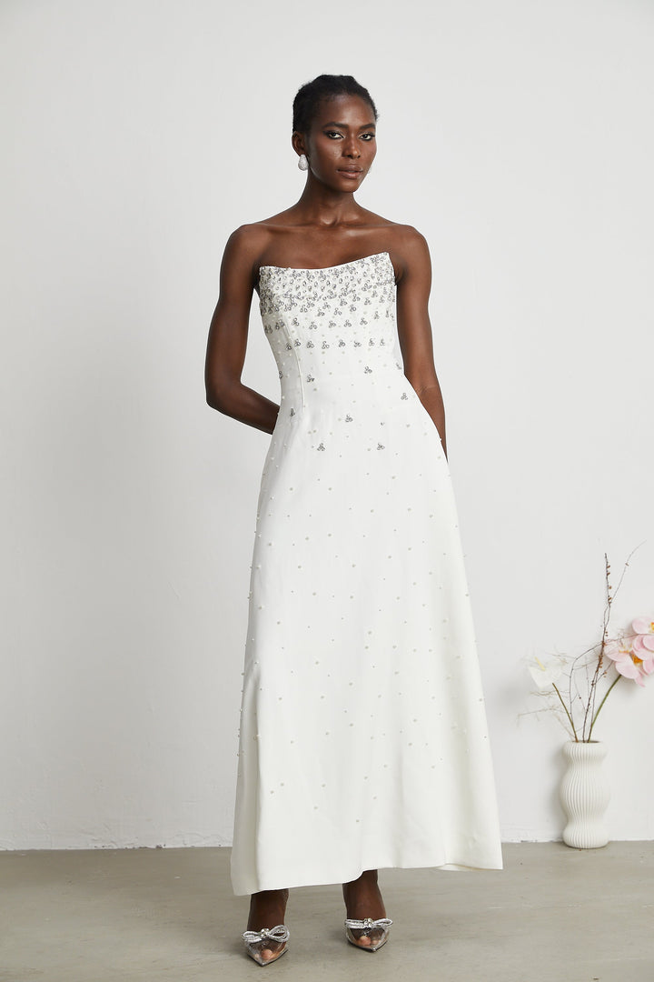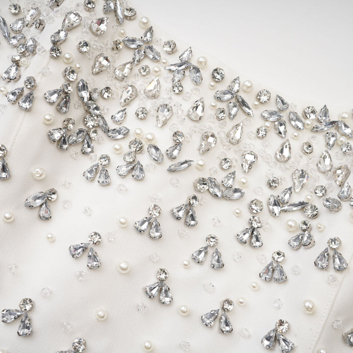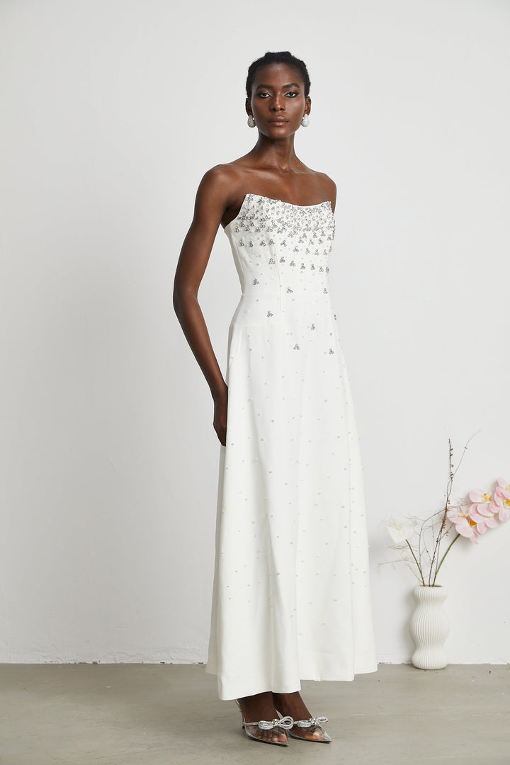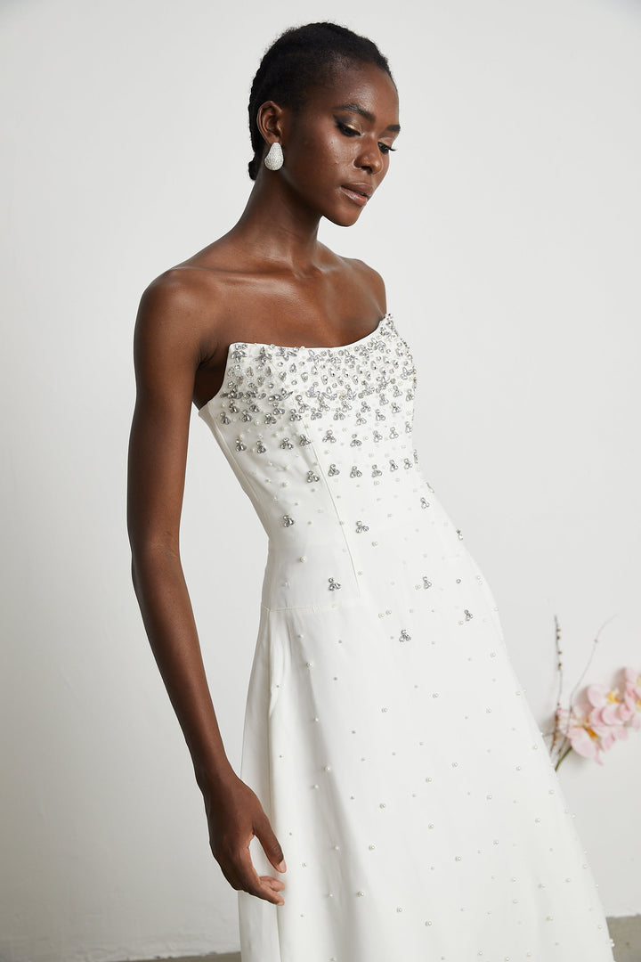 • IMPORTANT NOTICE: By ordering Melisande dress, you are abiding to the fact that all pearls & crystals are handmade. The occasional shedding and breakage of a very small number of pearls & crystals is a normal phenomenon. Even high-end or luxury brands encounter this.