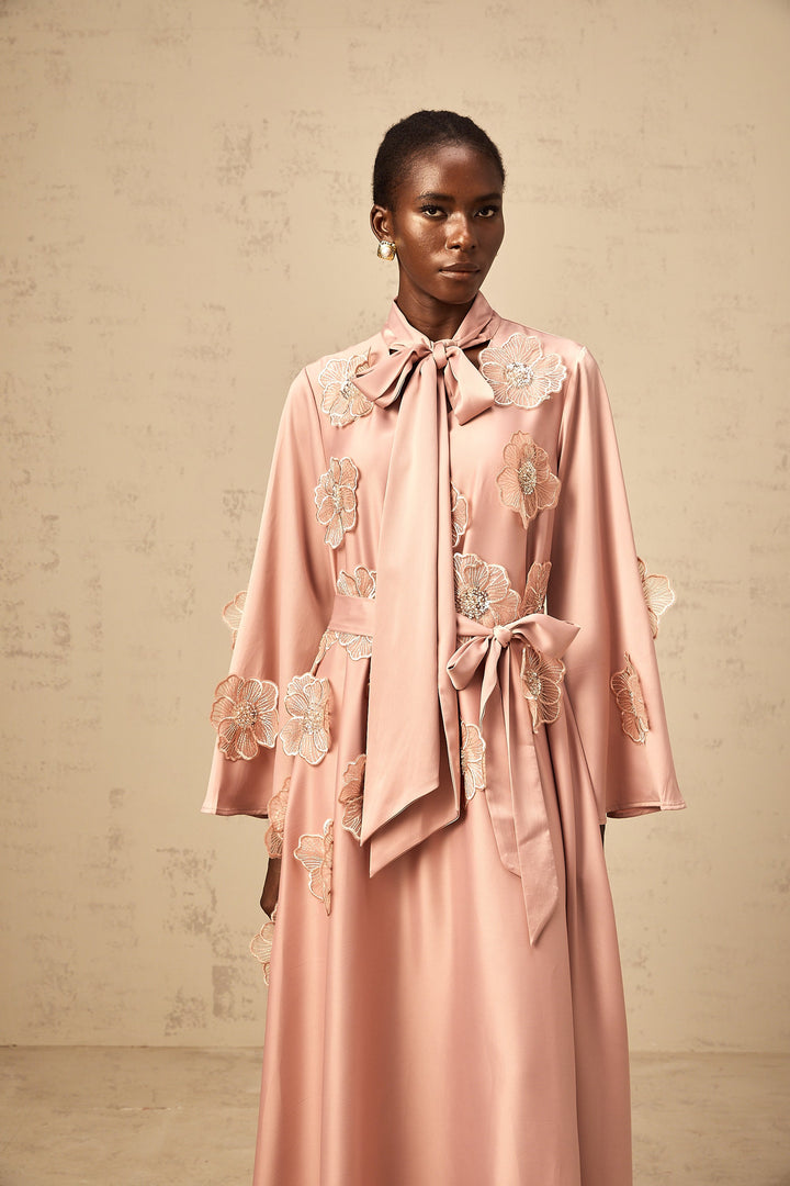 Orane tied floral-applique flared midi dress in Pink