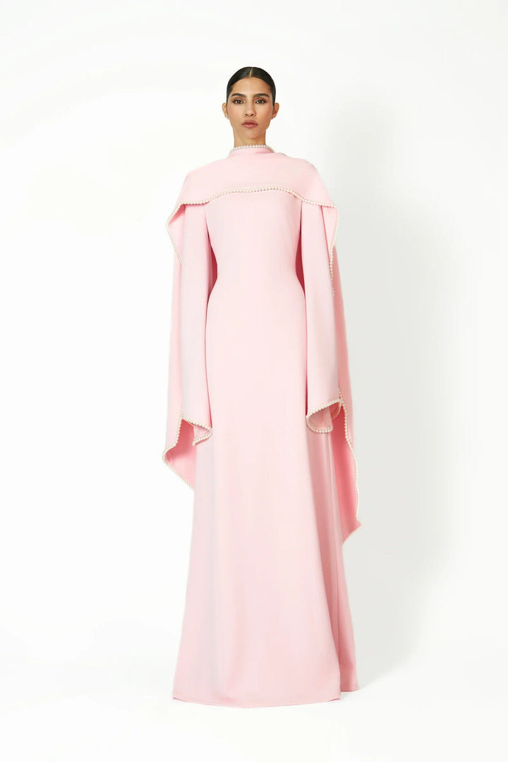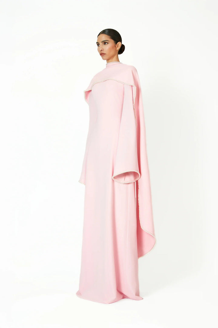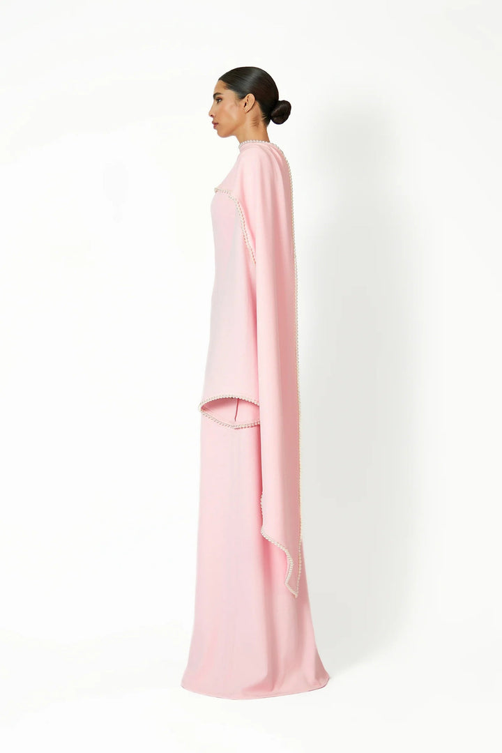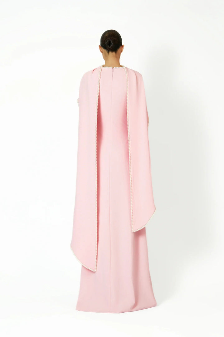 Piroska Pink Pearl Trim Shawl Detail Maxi Dress