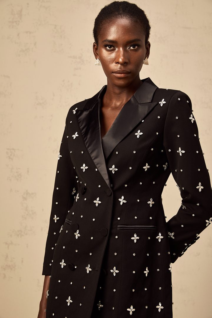 Quincie black crystal panelled mini blazer dress