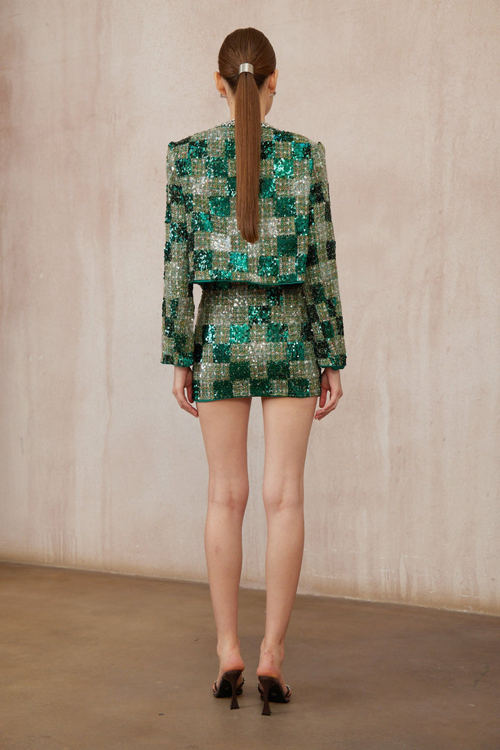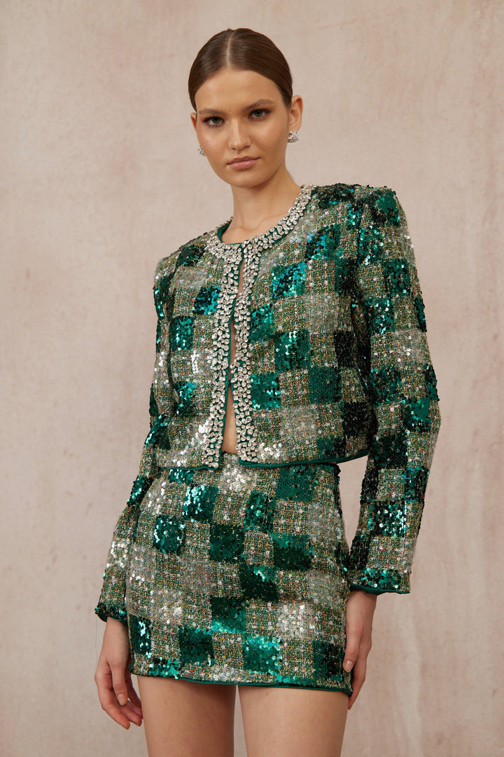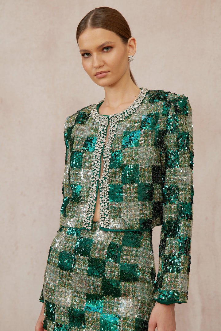 Raphaëlle Green Embellished Checked Tweed Matching Set