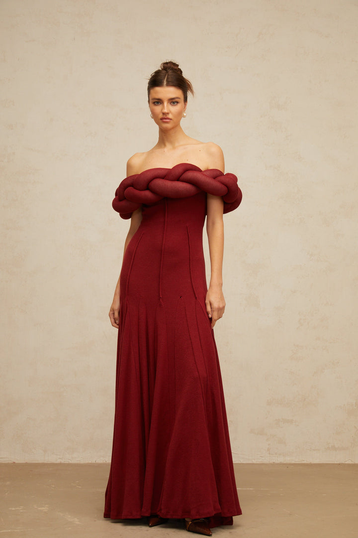 Roxane red braid-design knit maxi dress