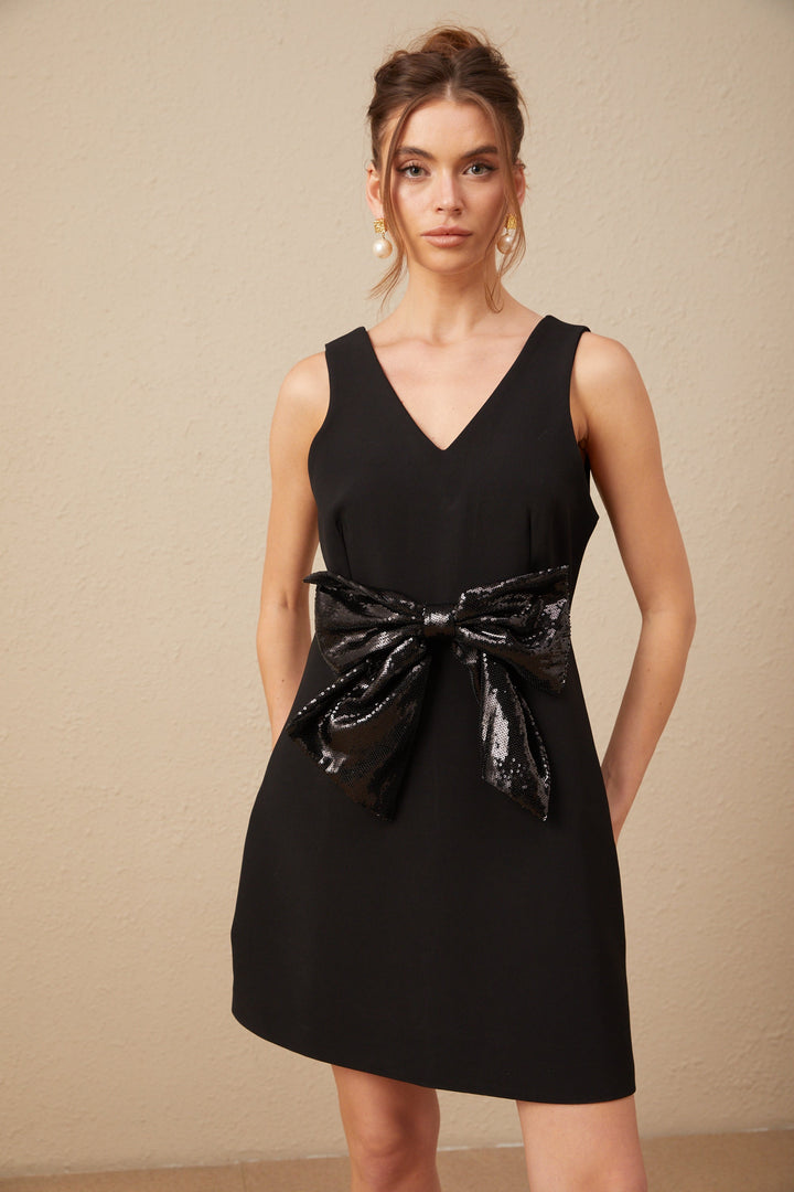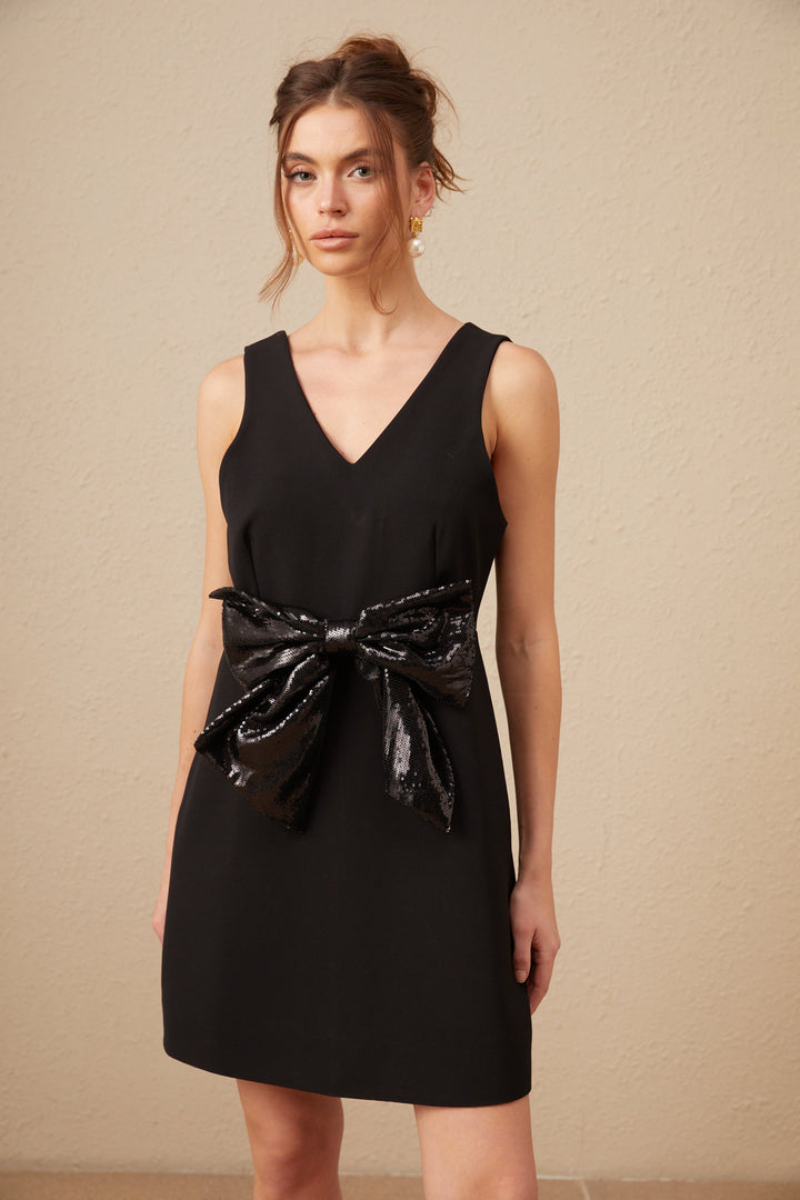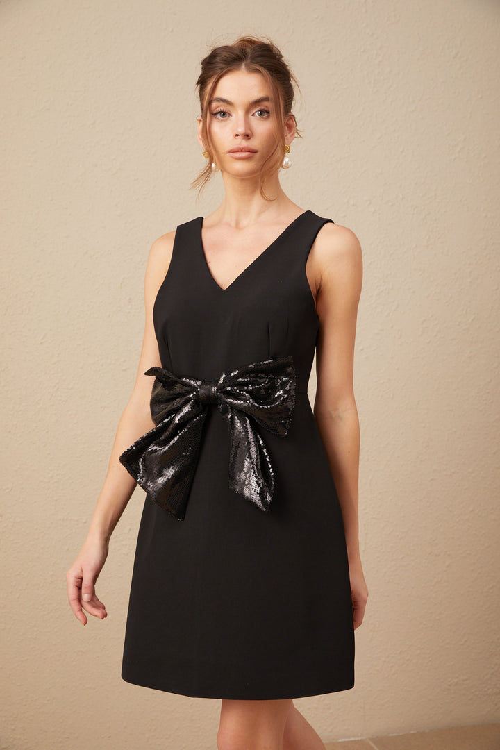 Roxane V-neck sequin-bow mini dress in Black (US Only)
