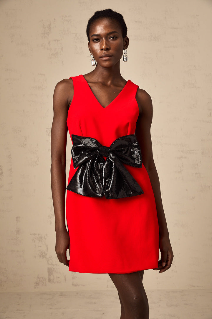 Roxane V-neck sequin-bow mini dress in Red (US Only)