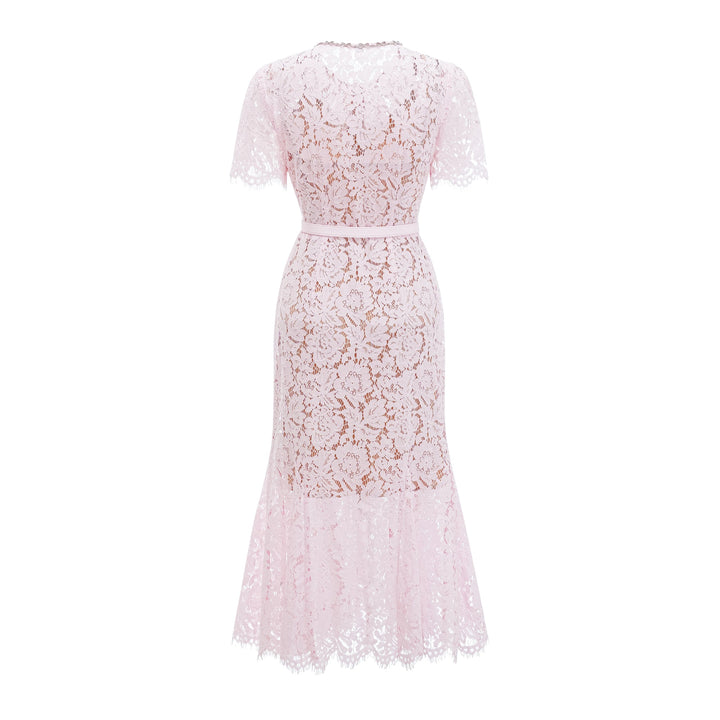 Sabine Pink Floral Lace Mermaid Midi Dress