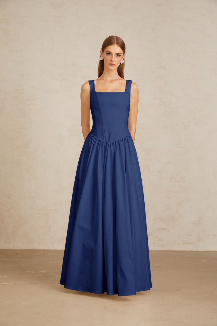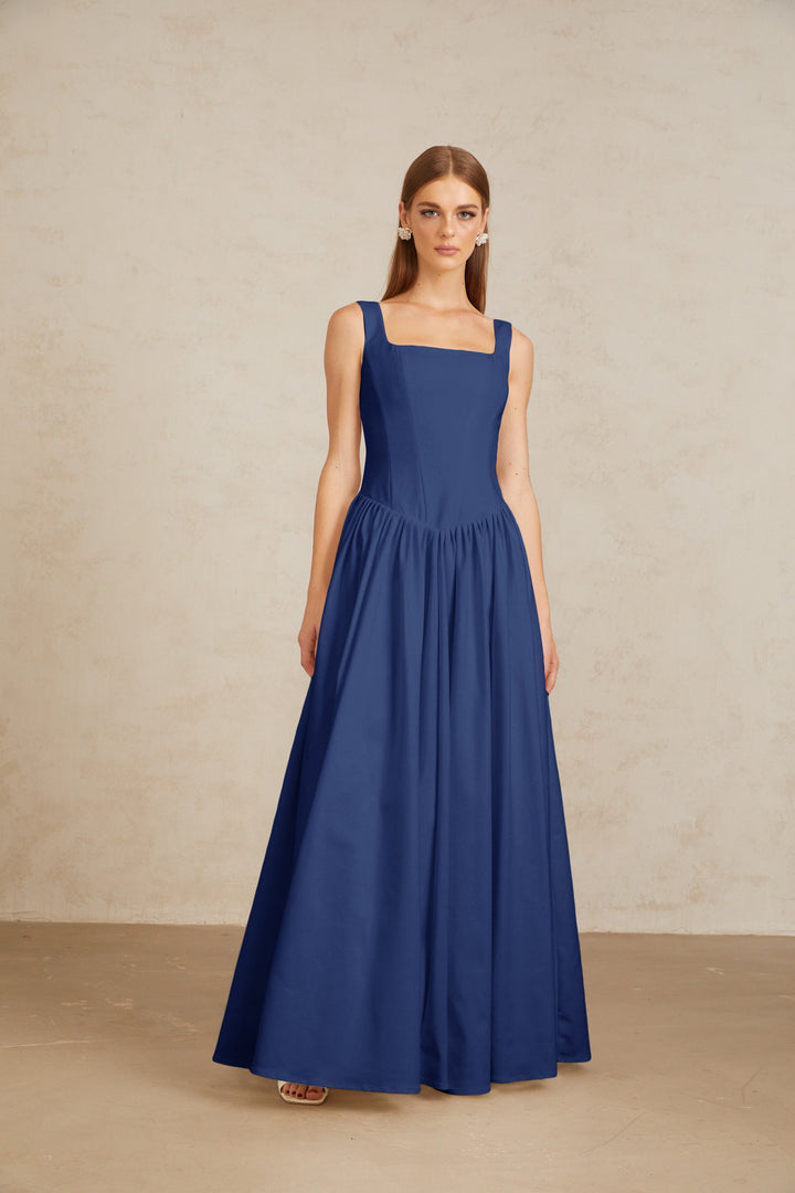 Sadie Blue Pleated Corset Maxi Gown