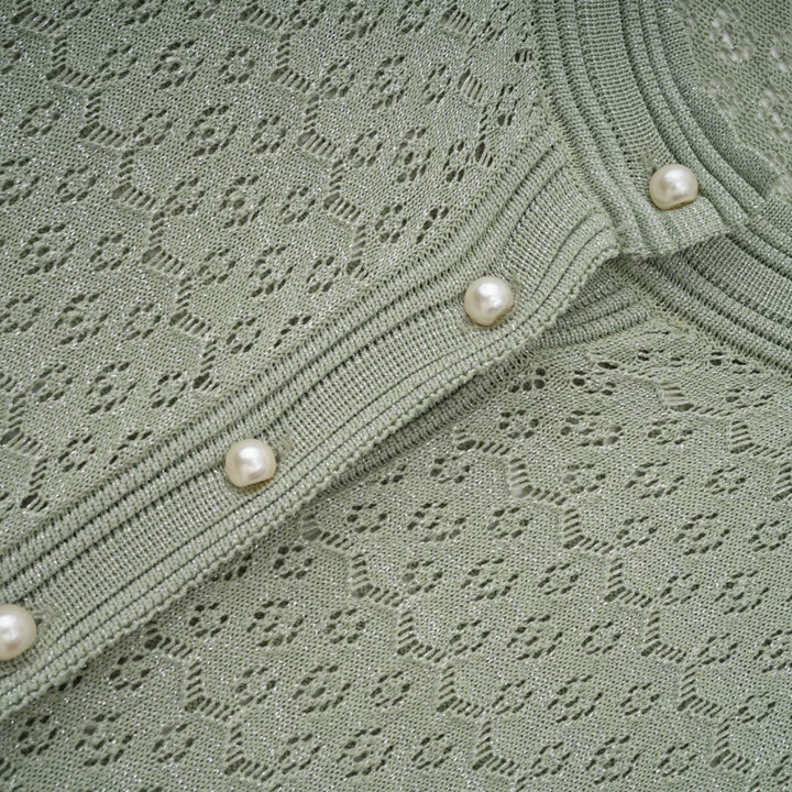 • Faux-pearl embellished buttons