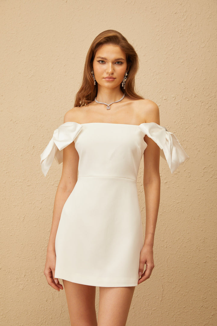 Sirkka White Off Shoulder Bowknot Mini Dress