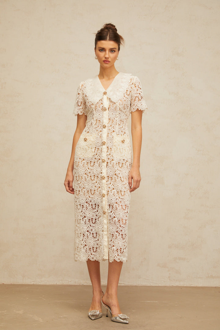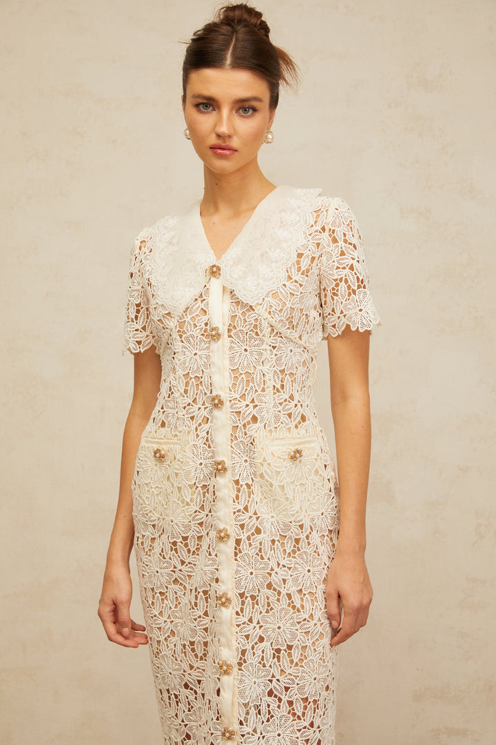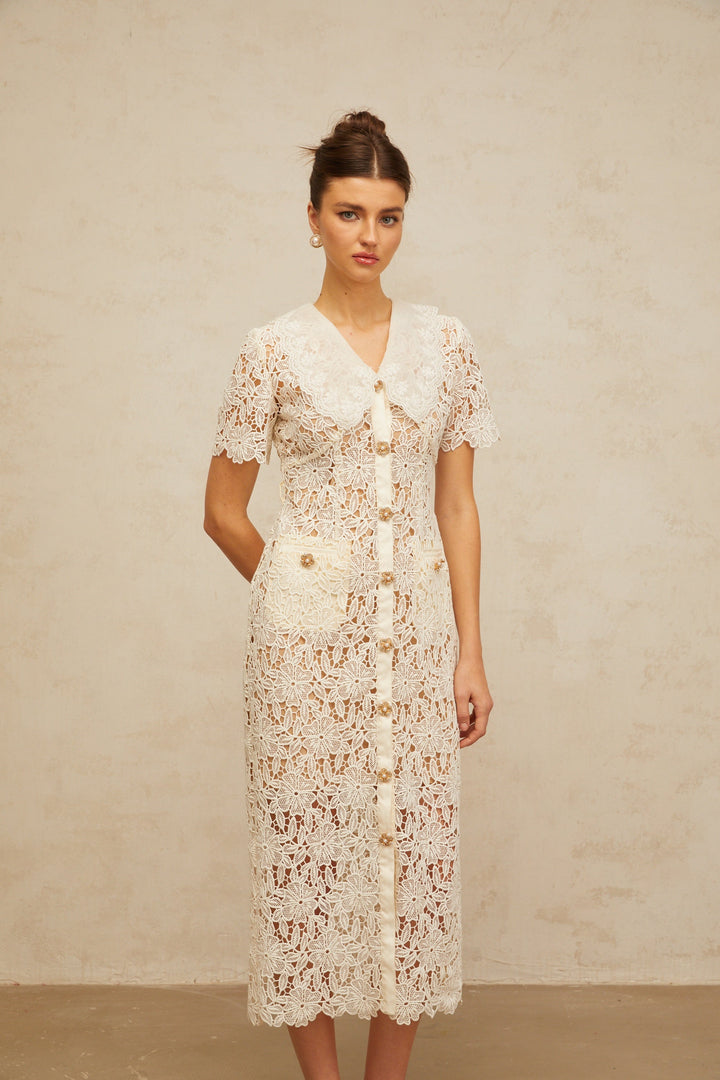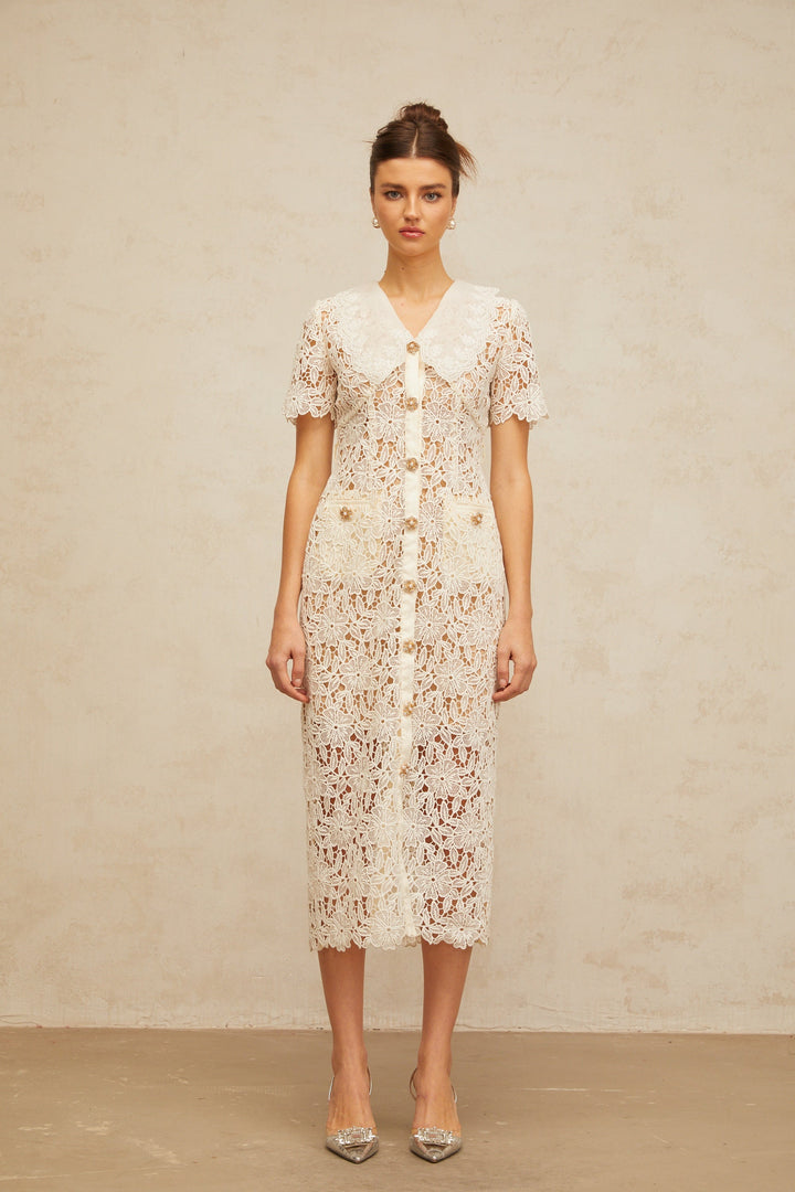 Sophie off-white corded-lace midi dress