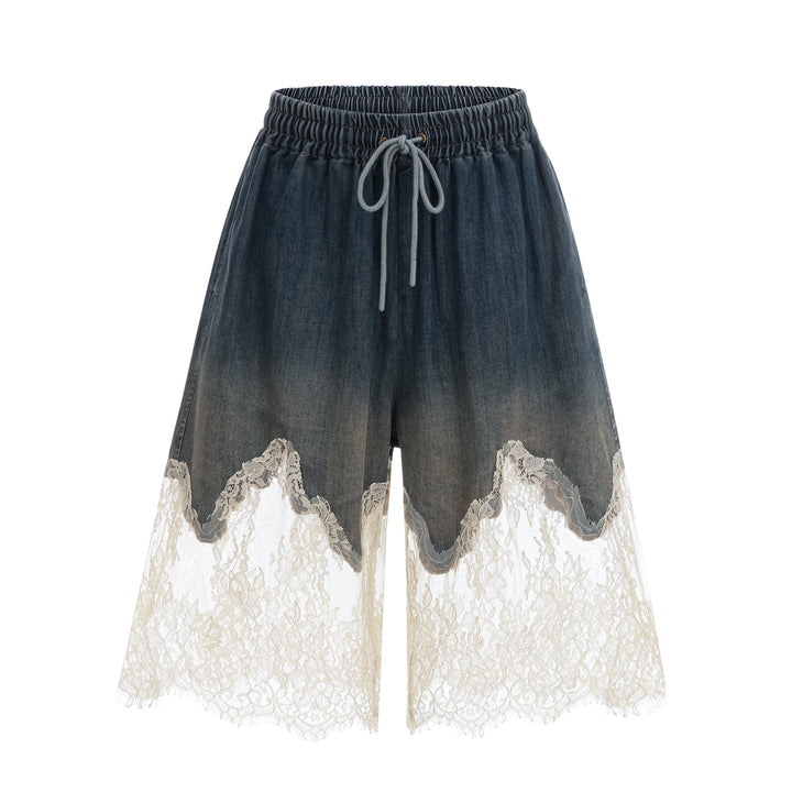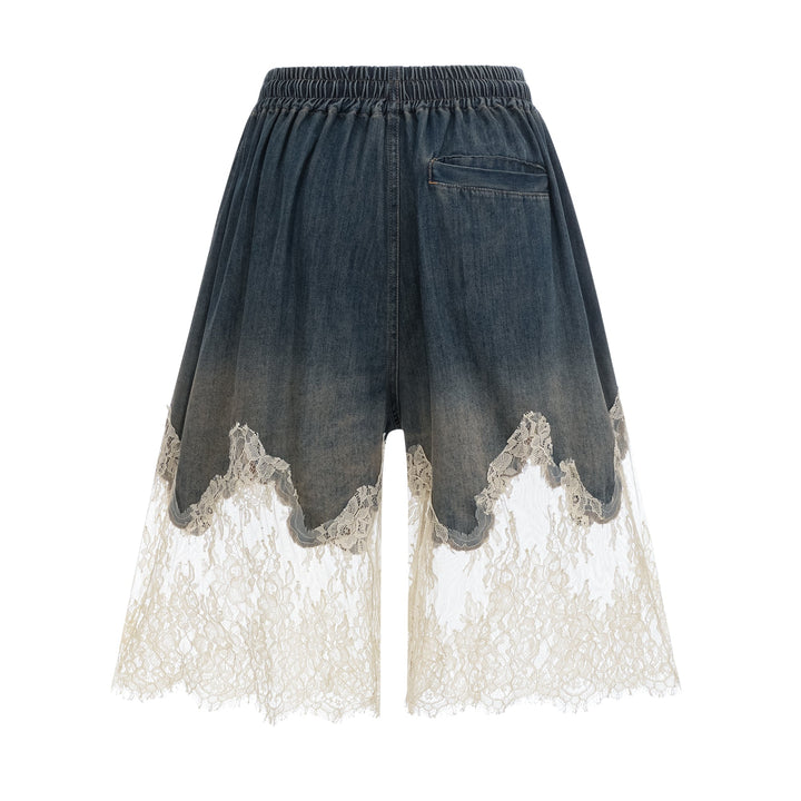 Sylvie lace-detail denim top & shorts matching set