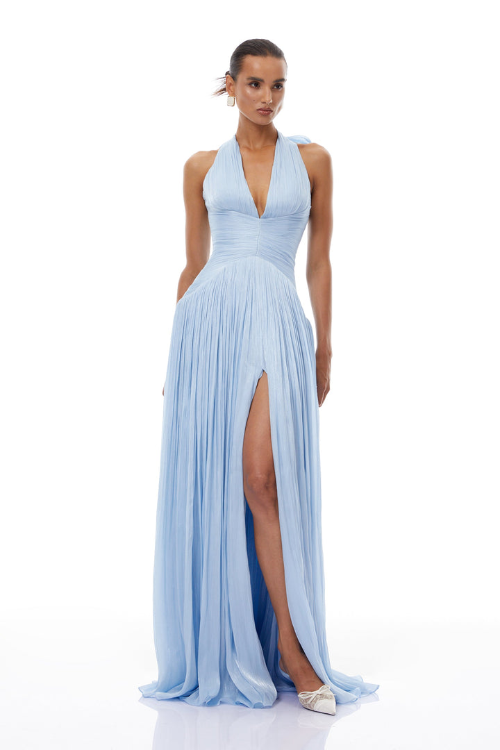 Térébenthine Blue Glossy Gathered Maxi Dress