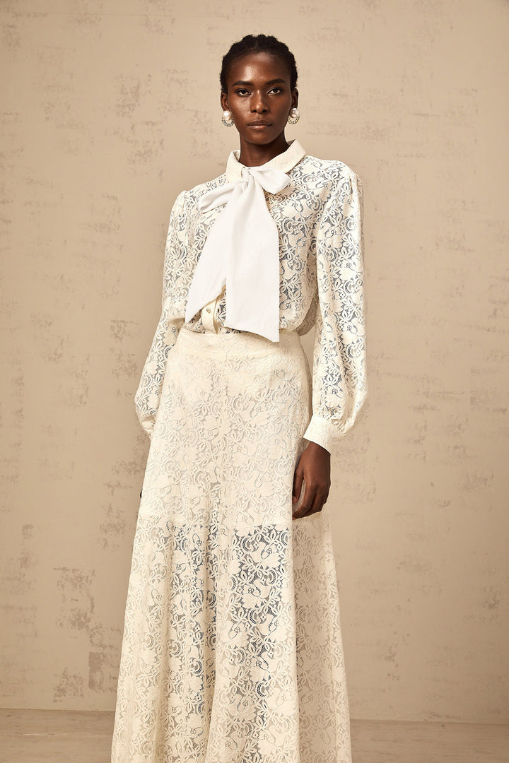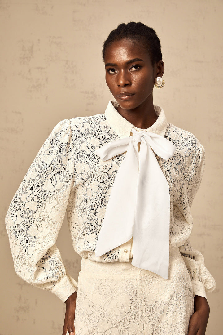 • Ribbon tie-neck detailing