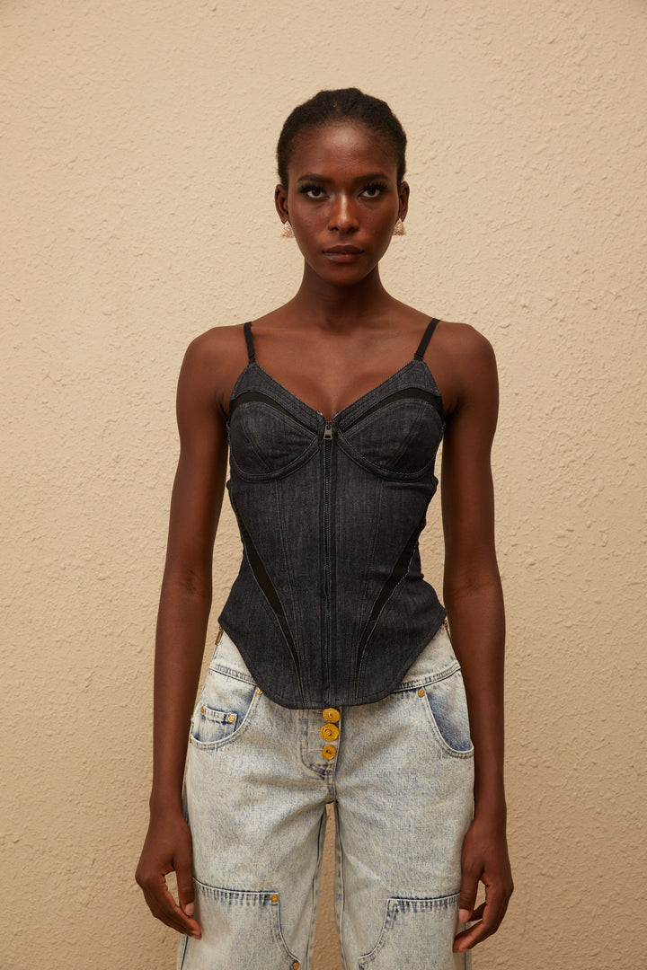 Veera Indigo Blue Bustier Denim Top