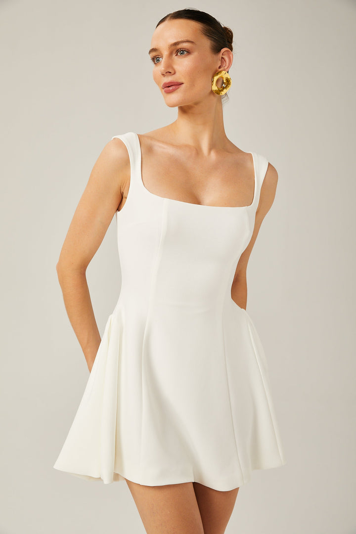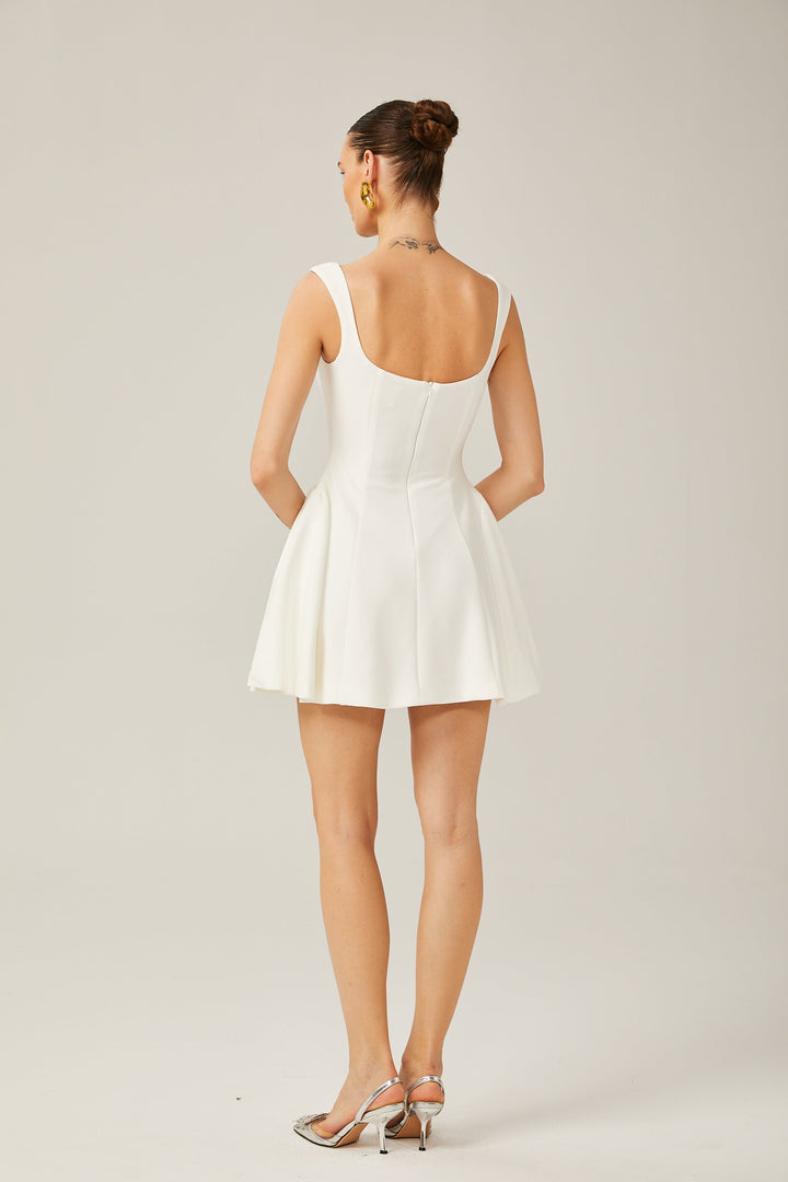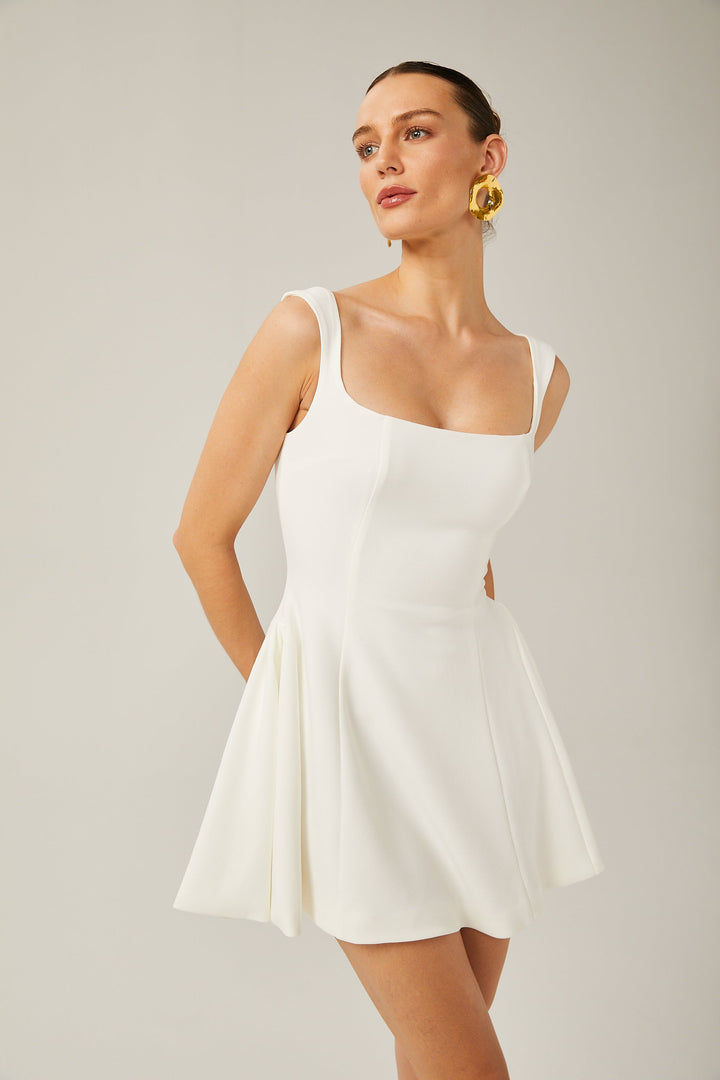 Félicité white sleeveless flared mini dress