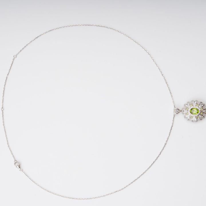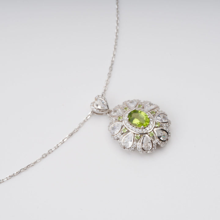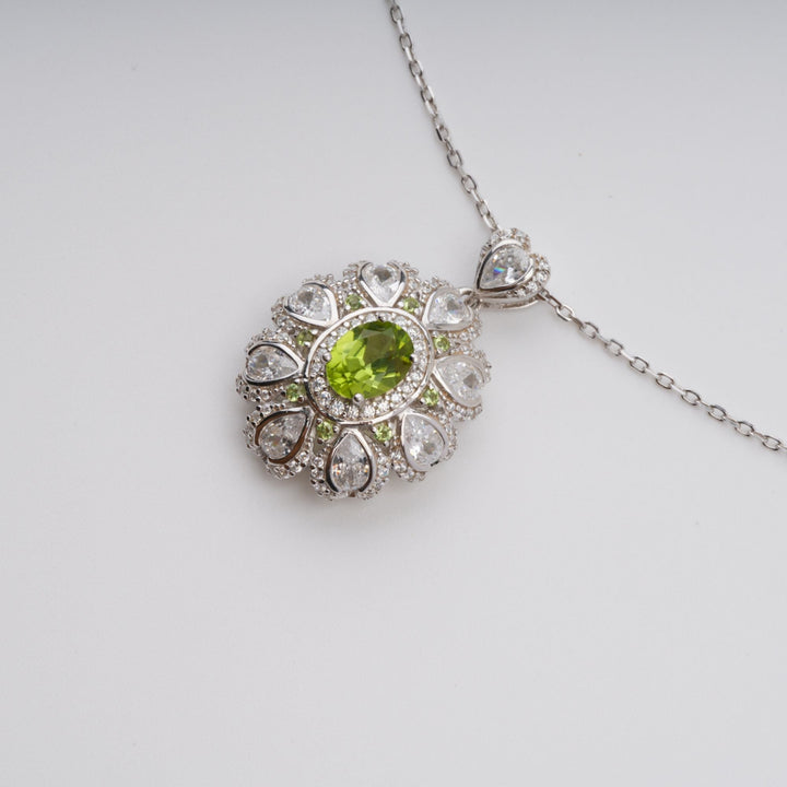 Kyliegh Green Floral Gemstone Pendant Sterling Silver Necklace