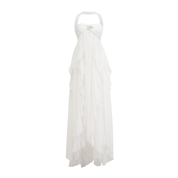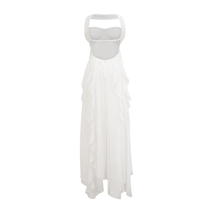 Mariah Pink Chiffon Ruffle Halterneck Maxi Dress