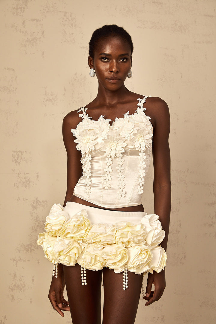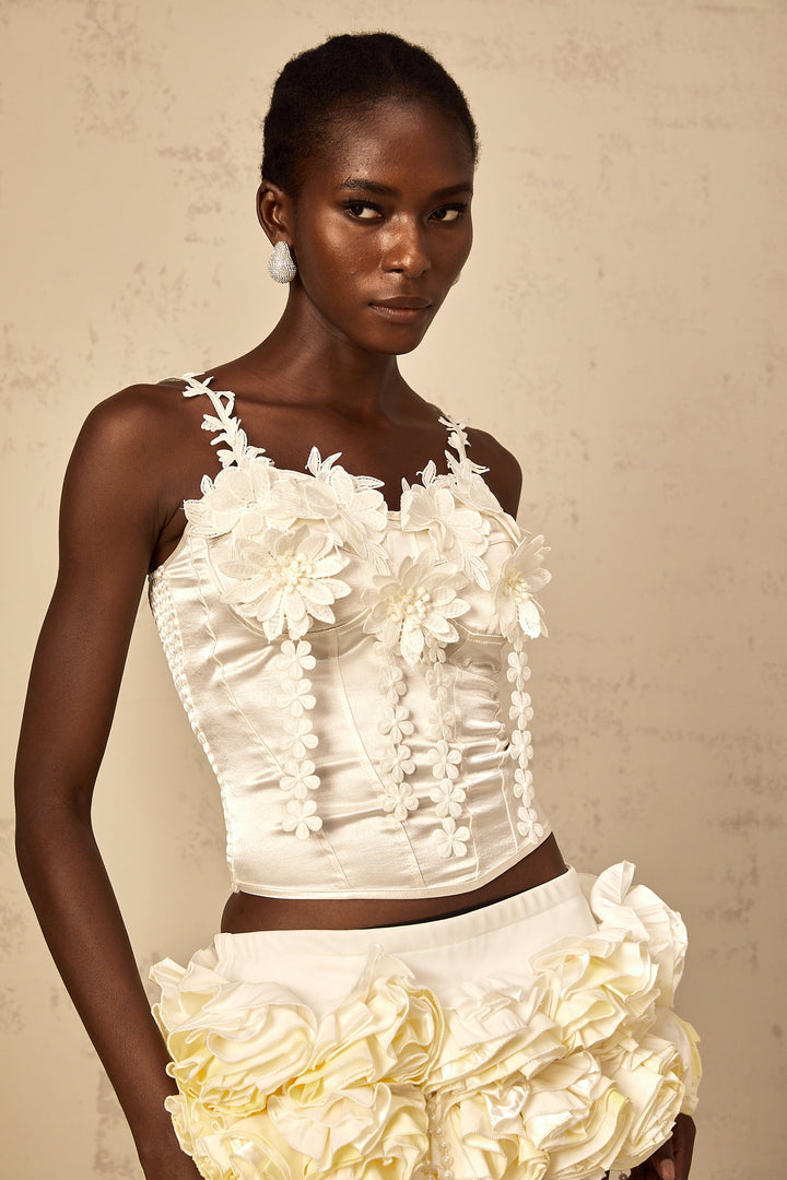 Mélina white floral-embroidered cropped top